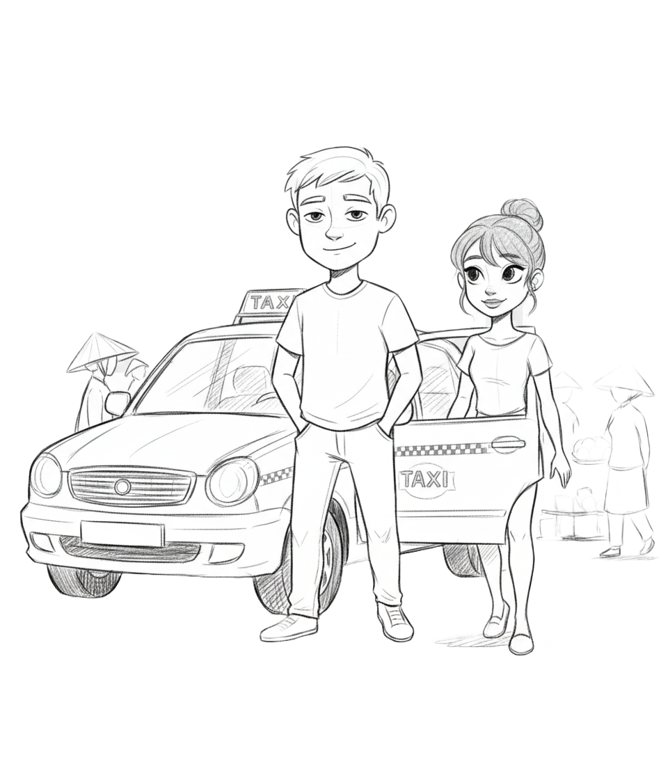 Spokojní z dobrého obchodu sme vyšli zo zmenárne keď nás oslovila milo vyzerajúca žena. Ukazujúc na mobil len hovorila “Grab?” mysliac najznámejšiu taxikársku aplikáciu vo Vietname (ako u nás Bolt, či vo svete Uber). Keď som jej ukázal kam ideme, cena akú som mal v aplikácii bola 260 000 dongov (8,6€). “Ja vám dám rovnakú cenu.” povedala po anglicky a ja som teda súhlasil.